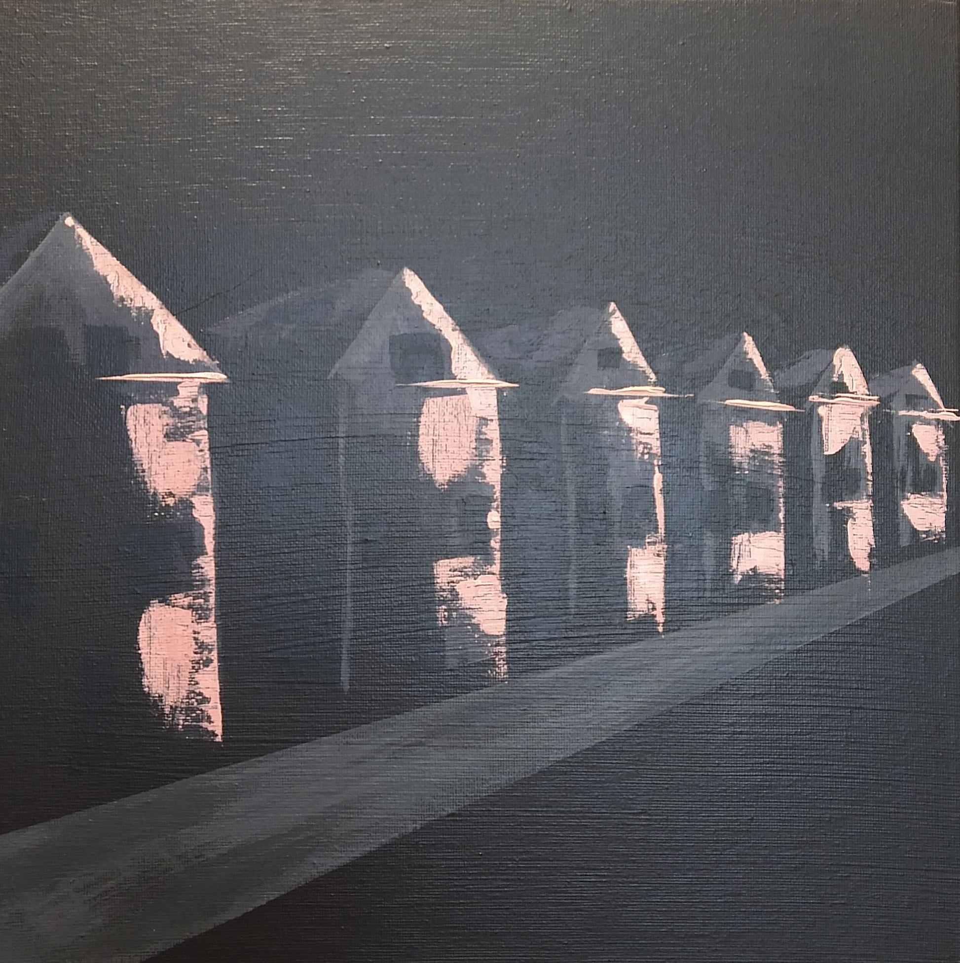 What does the American dream mean to you? Are you off to college? Bought a house yet? What keeps you up at night? 12x12 acrilic on canvas, done in shades of black and pink.