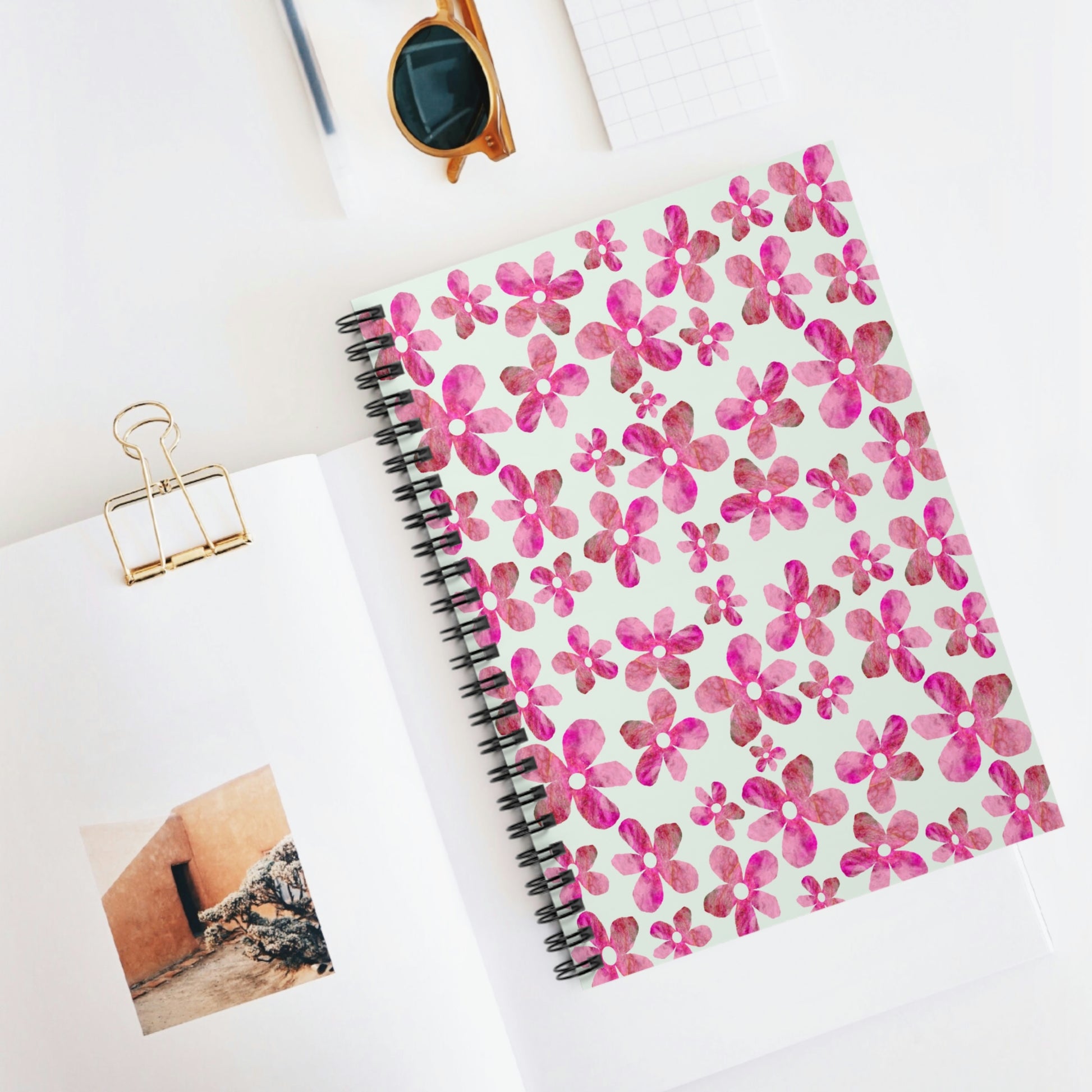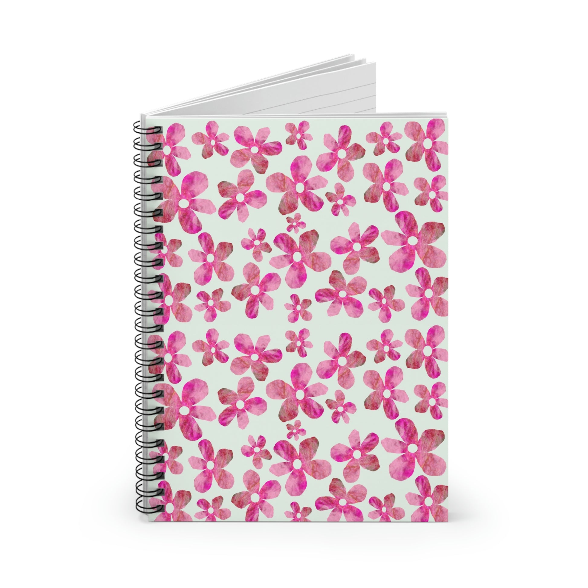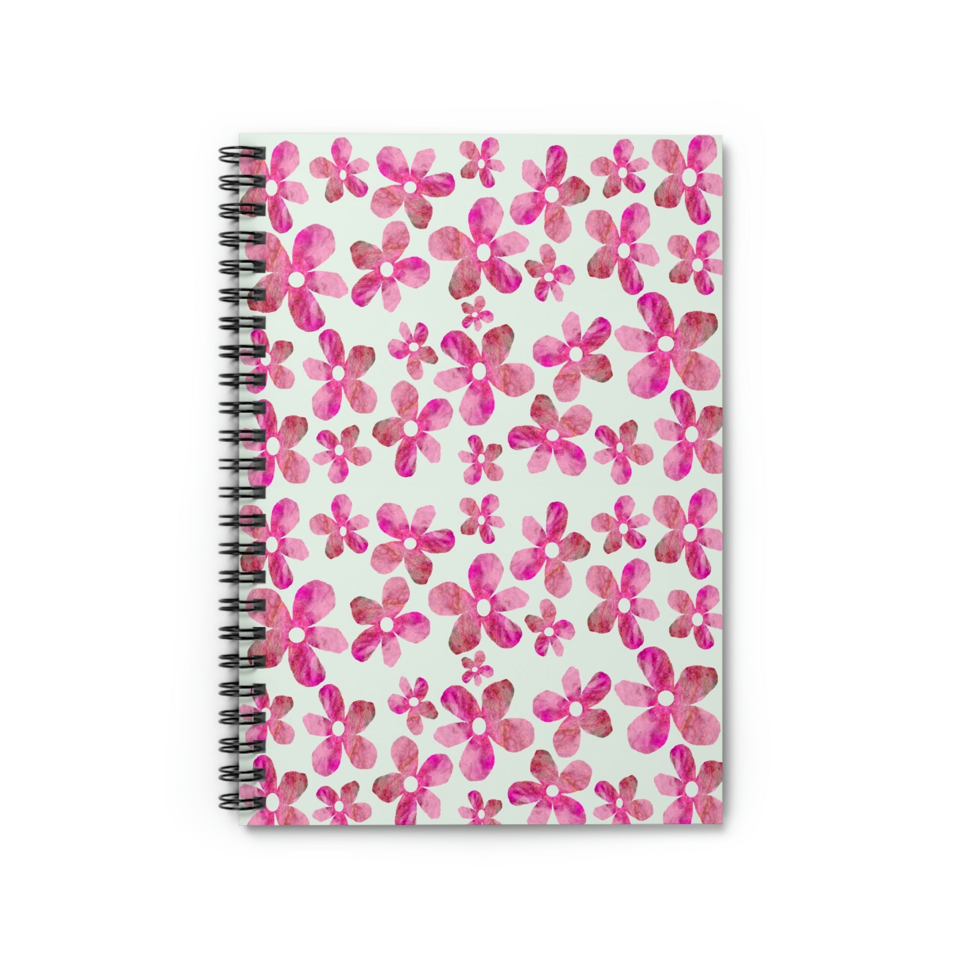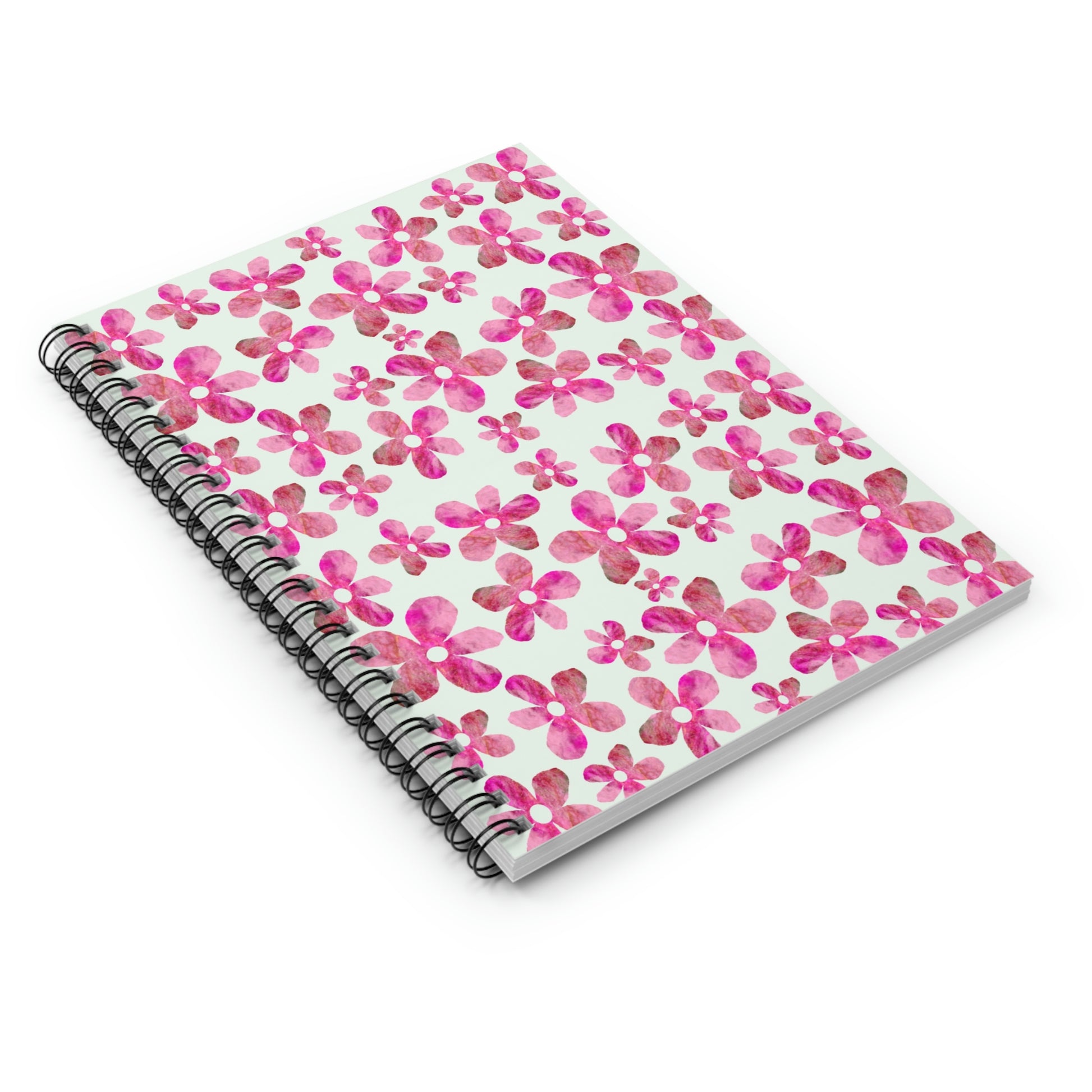 Summer Mint, Cotton Candy Pink Floral, Spiral Notebook - Ruled Line